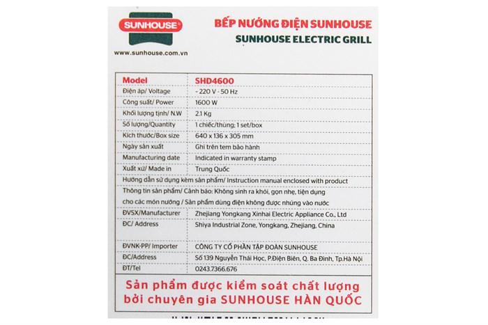 Bếp nướng điện Sunhouse SHD4600