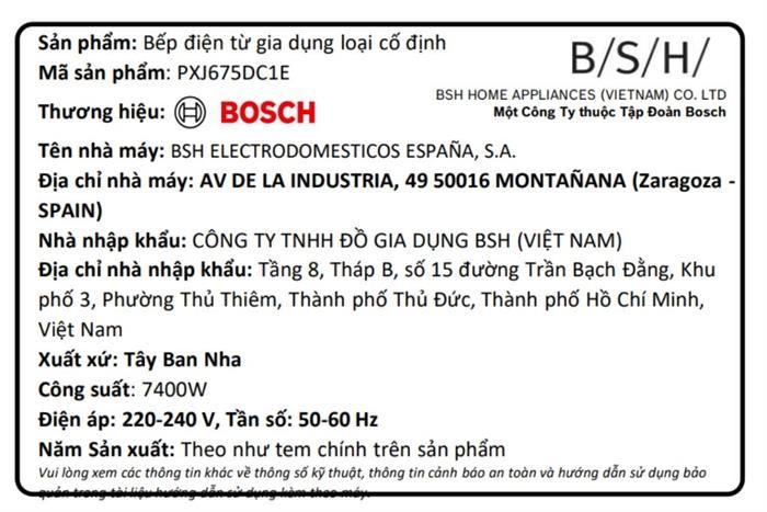 Bếp từ 3 vùng nấu lắp âm Bosch PXJ675DC1E