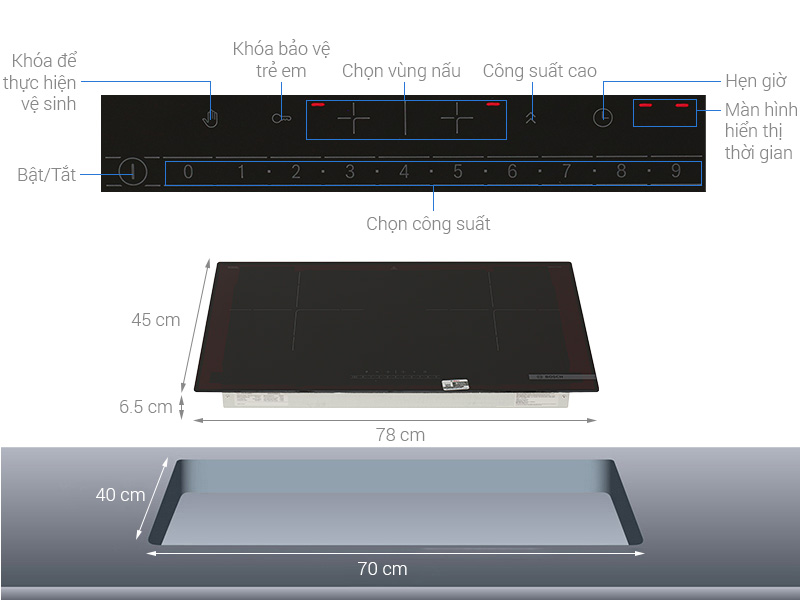 • Loại bếp : Bếp từ đôi, Bếp âm cần lắp CB