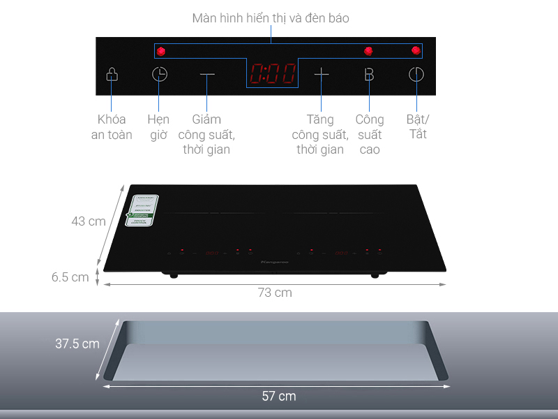 • Chất liệu mặt bếp : Kính Ceramic – Kanger