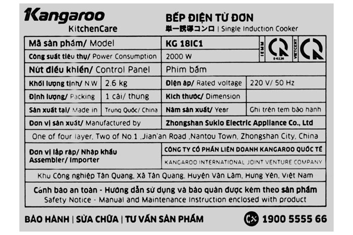 Bếp từ Kangaroo KG18IC1