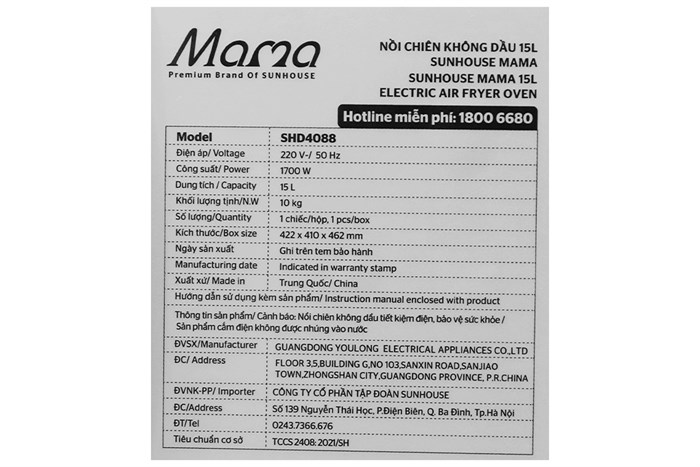 Trang chủ / Lò chiên không dầu Sunhouse Mama SHD4088 15 lít
