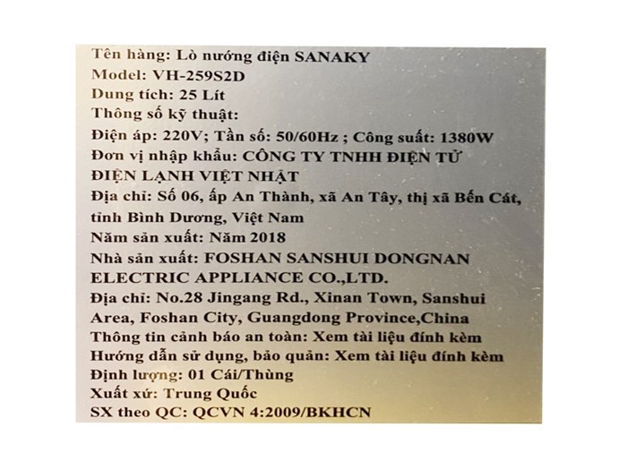 Kích thước khoang lò : Ngang 32.5 cm – Cao 18.3 cm – Sâu 23.5 cm