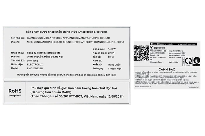 Trang chủ / Lò vi sóng có nướng Electrolux EMG25D22BM 25 lít