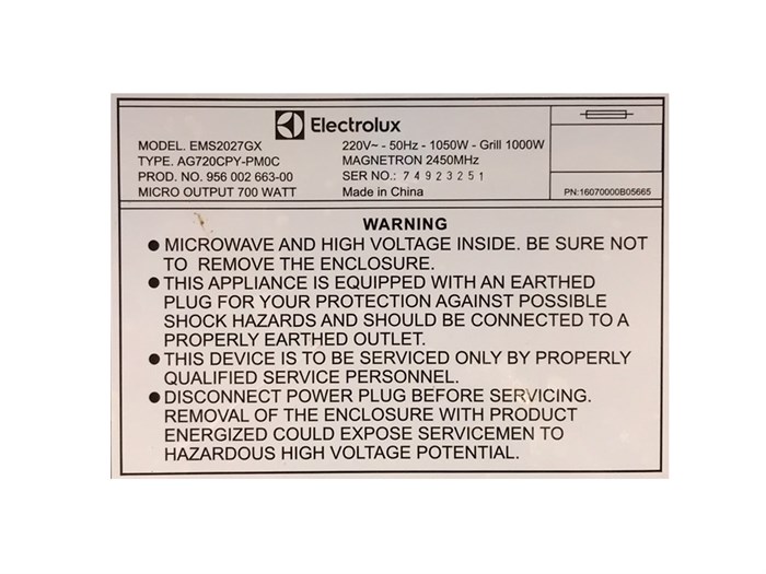 Trang chủ / Lò vi sóng có nướng Electrolux EMS2027GX 20 lít