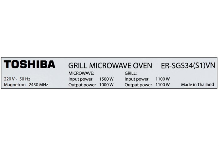 Trang chủ / Lò vi sóng có nướng Toshiba ER-SGS34(S1)VN 34 lít