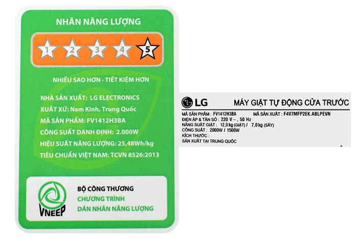 Máy giặt sấy LG Inverter giặt 12 kg – sấy 7 kg FV1412H3BA