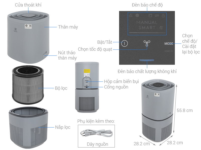 • Ngang 28.2 cm – Cao 55.8 cm – Sâu 28.2 cm – Nặng 5.8 kg
