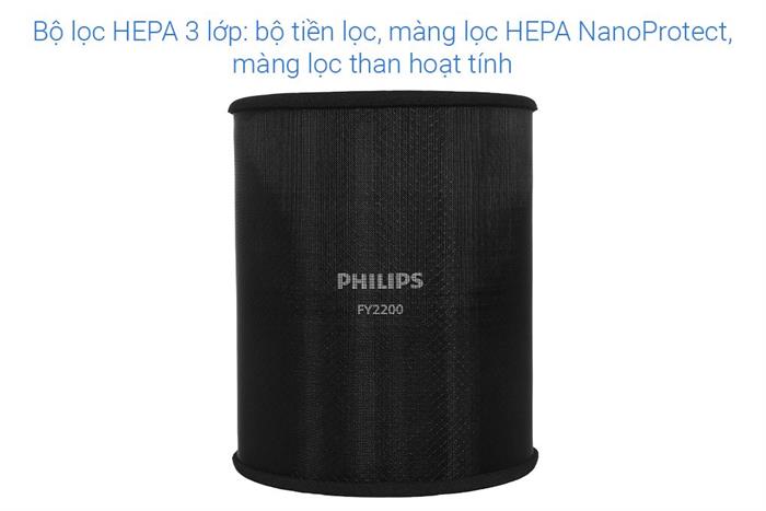 • Bộ lọc 3 lớp (Màng lọc Nano Protect HEPA – Màng lọc than hoạt tính – Màng lọc thô)