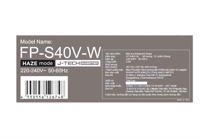 Trang chủ / Máy lọc không khí Sharp FP-S40V-W 23W