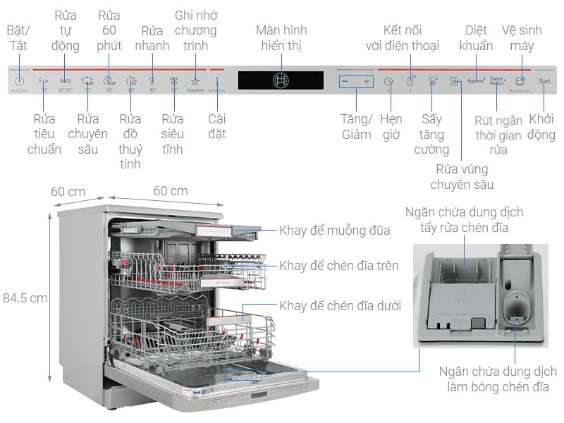 Số chén bát rửa được : 3 – 4 bữa ăn Việt (14 bộ châu Âu)