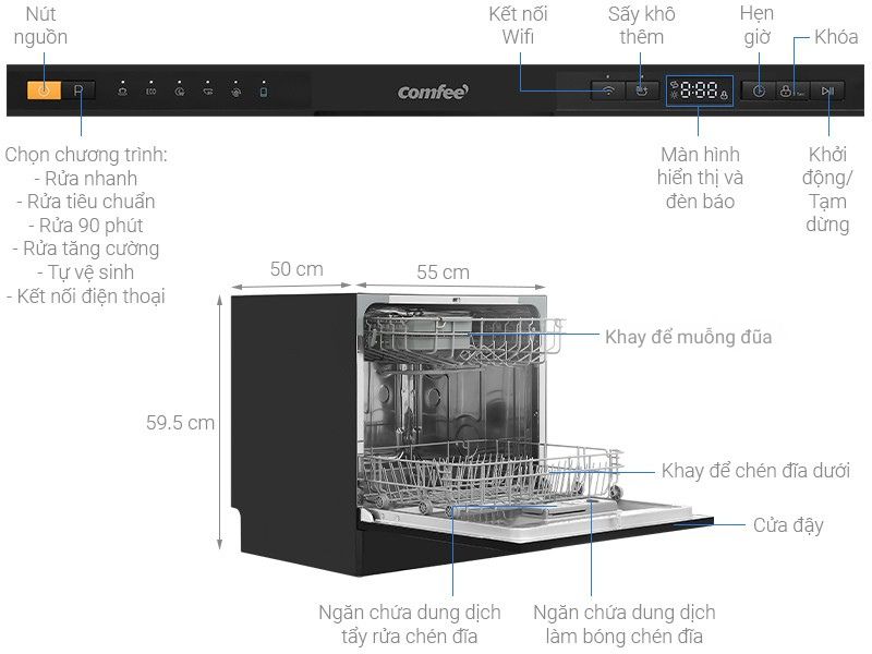 Số chén bát rửa được : 3 – 4 bữa ăn Việt (10 bộ Châu Âu)
