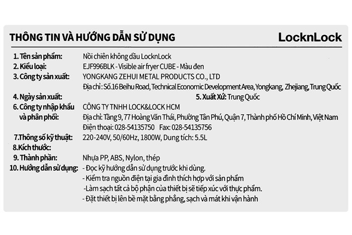 • Hãng : Lock&Lock