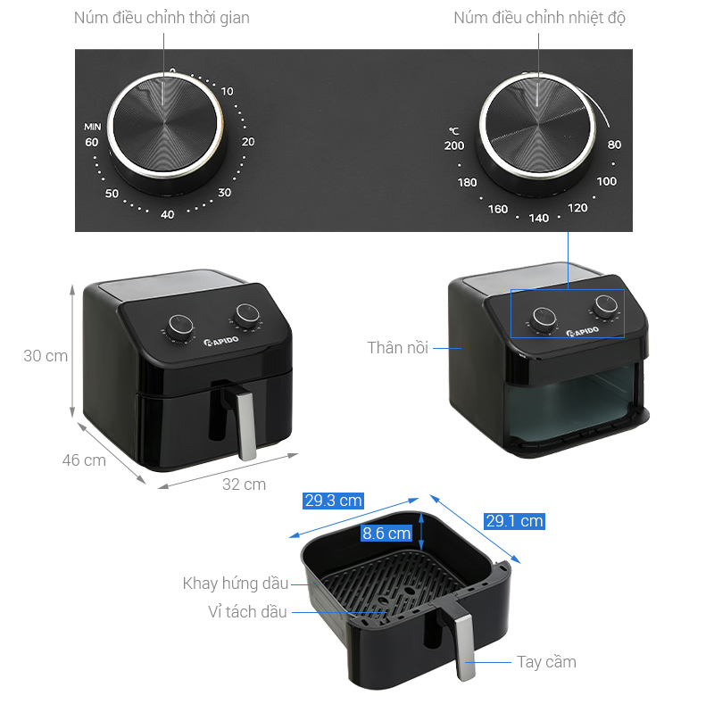 Nồi chiên không dầu Rapido RAF-9.0M 9 lít