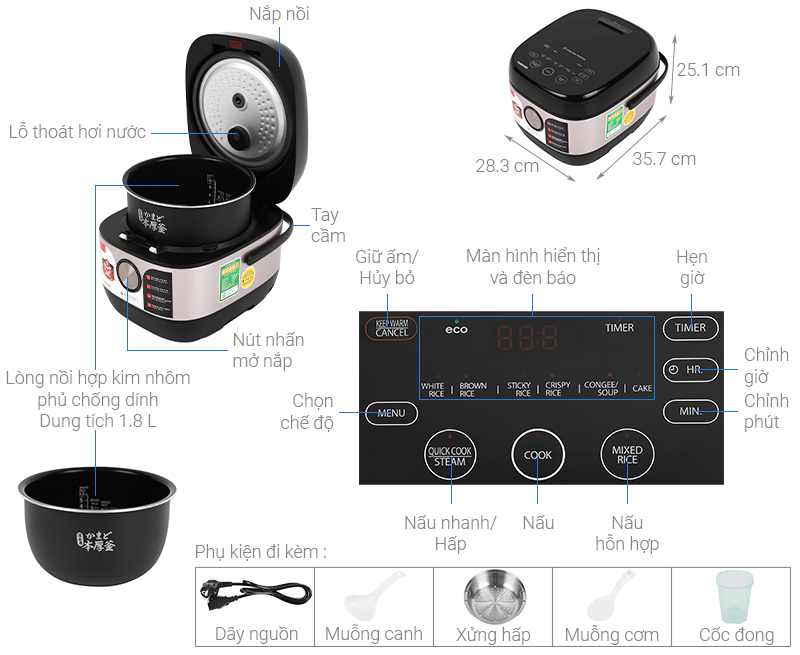 • Dung tích : 1.8 lít, Số người ăn 4 – 6 người