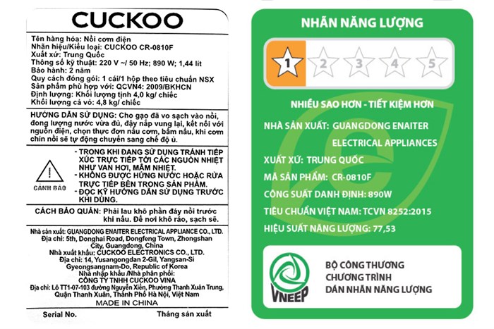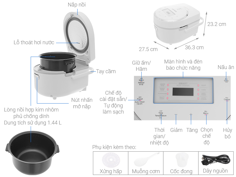 • Dung tích : 1.44 lít, Số người ăn 2 – 4 người
