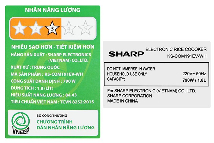 Trang chủ / Nồi cơm điện tử Sharp 1.8 lít KS-COM191EV-WH