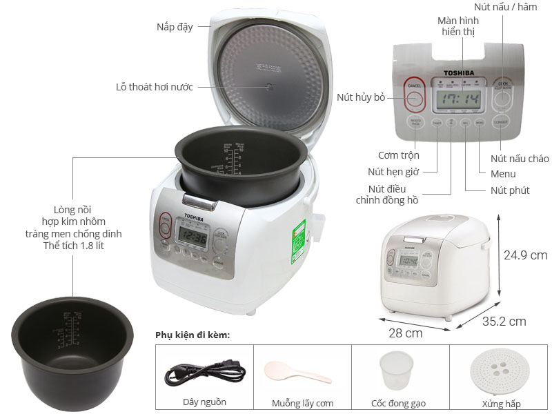 • Dung tích : 1.8 lít, Số người ăn 4 – 6 người