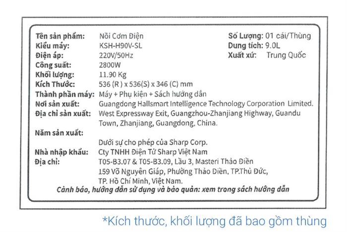 Nồi cơm nắp rời Sharp 9 lít KSH-H90V-SL