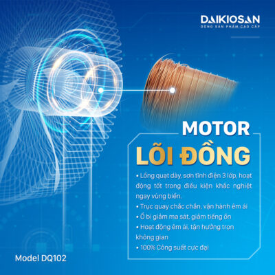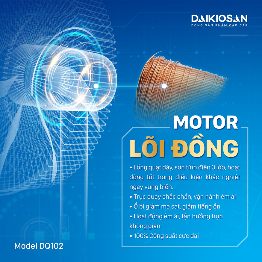 Động cơ : Động cơ bạc đạn giúp hoạt động êm ái, bền bỉ, lưu lượng gió ổn định, tiết kiệm điện
