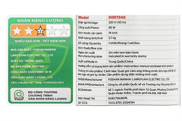 Loại quạt : Quạt đứng – 60W – 5 mức gió
