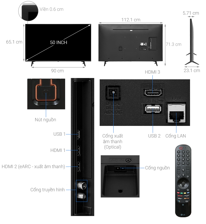 Kích cỡ màn hình : 50 inch