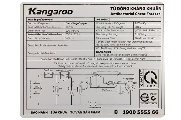 Nhiệt độ ngăn đông (độ C) : Dưới -18℃