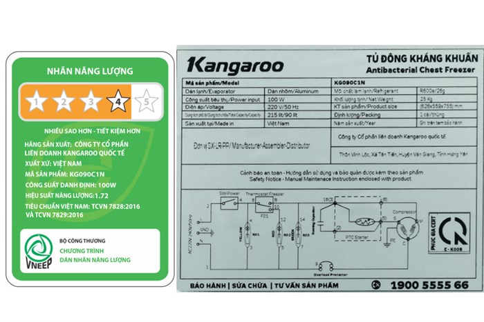 Nhiệt độ ngăn đông (độ C) : ≤-18ºC