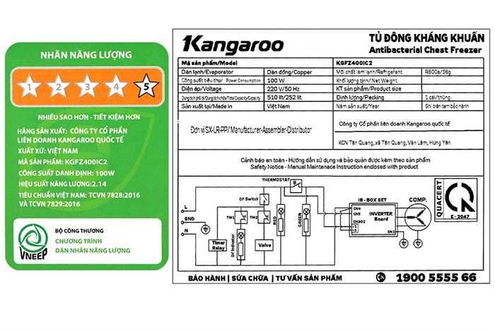 Nhiệt độ ngăn đông (độ C) : ≤ -18°C
