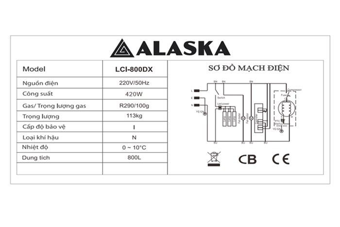 Dung tích sử dụng : 800 lít – Ngăn mát 800 lít