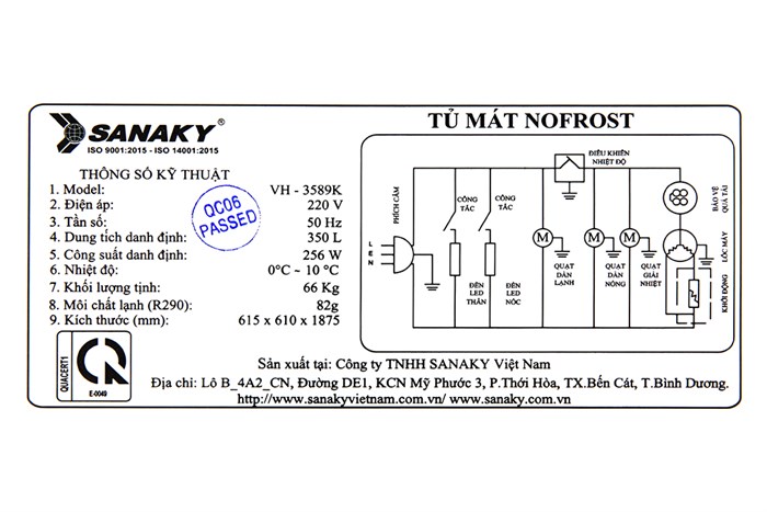 Kích thước, khối lượng : Cao 184.5 cm – Ngang 62.5 cm – Sâu 61 cm – Nặng 66 kg
